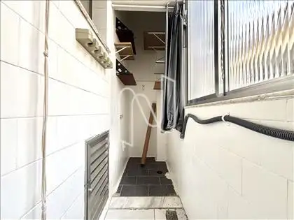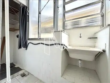 A área de serviço é arejada e conta com um janelão, garantindo ventilação natural e claridade.